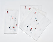 Zoom Set of 4 Skiers Printed Linen Napkins