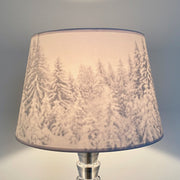 Always Inspired by photography and nature, Dede Johnston Design's lampshade is printed inside with her photograph of snow covered pines.  A beautiful decorative addition to your home when illuminated or without light.